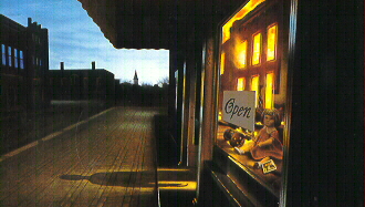 Over here on the steps of the band stand will be fine, the suns warm and from here, sprang in the middle of town common you can see just about all of downtown. You want to mind the splinters, that's all....